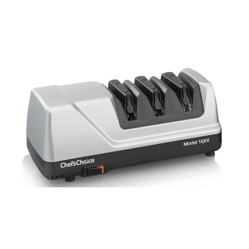 Cet aiguiseur électrique Chef’s Choice CC.15, modèle Trizor XV, va vous permettre de facilement convertir les couteaux à tranchant 20° en 15° pour des performances de coupe maximales (moins d’effort pour couper). Parfait pour les professionnels, l’affûteur est adapté aux couteaux de cuisine, de chasse, de poche, pour une très grande polyvalence au quotidien. Le Chef’s Choice Trizor XV dispose de 3 étapes que voici :