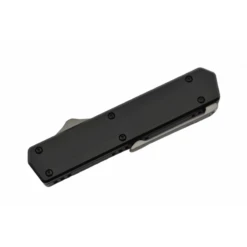 Le Benchmade Auto Adamas 2750GY-3 met le confort de prise en main au premier plan. Ce couteau automatique se dote d’un manche coloris marron en G10, un matériau réputé pour son ergonomie même par temps humide. Ce même manche est ajouré à plusieurs reprises pour un style accrocheur, qui attire le regard, un ajour plus petit est en réalité un trou pour lanière, ou encore trou pour cordon si vous préférez. Au dos du manche, on retrouve un clip réversible de couleur noire embelli par l’emblème Benchmade, à savoir le motif papillon.
