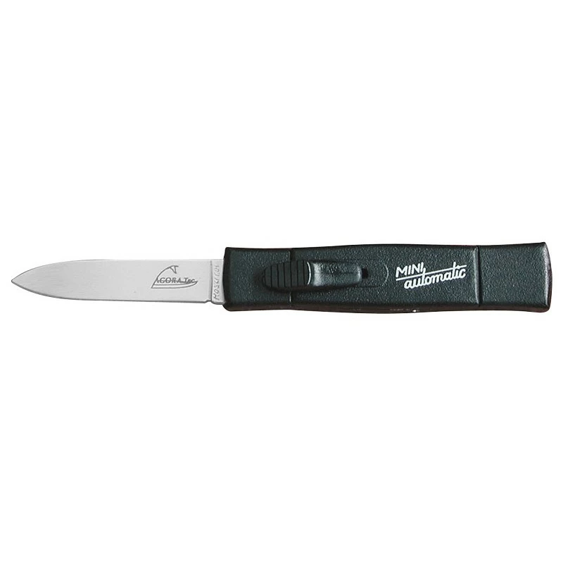 Portant la rĂ©fĂ©rence 256, le Consorzio Coltellinai Mignon est un couteau automatique OTF (Out The Front, ou ouverture frontale) de petite taille. En effet, il possède une petite lame de longueur 6cm conçue en acier inoxydable 440, toujours de profil spear point. Une petite lame tranchante et rĂ©sistante Ă la corrosion qui “fait le job” en assurant un coupant de qualitĂ©. N’oubliez pas que cette mĂŞme lame peut ĂŞtre personnalisĂ©e (gravure du texte de votre choix). PrĂ©cision importante, parce qu’il s’agit d’un couteau automatique OTF, la lame s’Ă©jecte par l’avant sous la commande du bouton situĂ© sur le manche noir en rĂ©sine synthĂ©tique. Une poignĂ©e ergonomique et transportable qui est dĂ©corĂ©e par le texte “Mini automatic” en blanc afin de bien ressortir par-dessus la couleur noire. Le Consorzio Coltellinai Mignon est fabriquĂ© en Italie Ă Maniago. Un couteau automatique de poche qu’il sera très facile de garder sur soi, et ce, mĂŞme durant les dĂ©placements et mouvements !