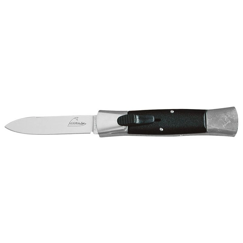 Le Consorzio Coltellinai Piccolo (référence 251L) dans sa version manche fabriqué en résine synthétique noire, avec mitres en argent au niveau des extrémités. En plus d’offrir une prise en main ferme et agréable, cette poignée bicolore apporte également une touche moderne/design très appréciable. Le Consorzio Coltellinai Piccolo 251L est un couteau automatique OTF (Out The Front) que l’on aime regarder, admirer en raison de sa beauté. Le système d’ouverture/fermeture de la lame est très simple, pour l’éjecter, il suffit d’utiliser le bouton glissière situé sur le manche. D’ailleurs, sachez que la lame de 7cm est fabriquée en acier inoxydable 440, profil spear point. Elle est à la fois tranchante ainsi que résistante à la rouille (corrosion), possibilité de la graver par le texte de son choix, et cela, au niveau des deux faces (voir bouton ajouter une gravure ci-dessous). Couteau automatique OTF Consorzio Coltellinai Piccolo 251L conçu et fabriqué à Maniago en Italie, existe aussi en version manche entièrement en synthétique.