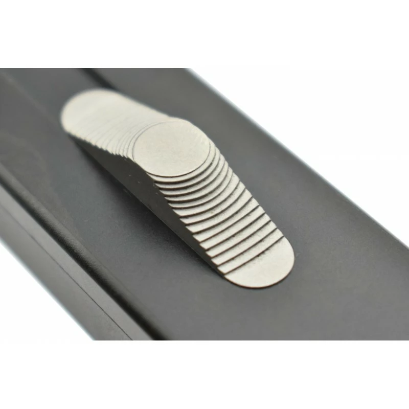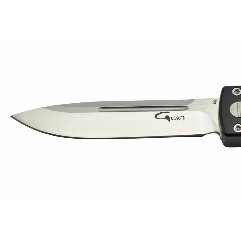 La marque Française Golgoth est spécialisée dans la conception de couteaux automatiques. Ce modèle G12 est un OTF qui vient garnir encore un peu plus l’offre déjà relativement conséquente. Le Golgoth G12 est doté d’une lame de forme drop point en D2, acier de haute qualité résistant à la corrosion comme à l’usure. Mesurant 88mm de longueur, la lame s’ouvre vers l’avant sous la commande du bouton sur la poignée qu’il faudra simplement faire coulisser. Un manche qui est fabriqué en aluminium aéronautique anodisé noir ce qui lui vaut une forte robustesse en plus d’un style sobre mais élégant. Facile à emporter, il mesure 121mm de long et intègre également un clip de ceinture en titane, même matériau utilisé que pour le bouton d’ouverture, les vis ainsi que le brise-vitre dont l’extrémité est en céramique. Avec le couteau automatique OTF Golgoth G12 en poche, vous pourrez pallier à toute éventualité, même les plus urgentes !