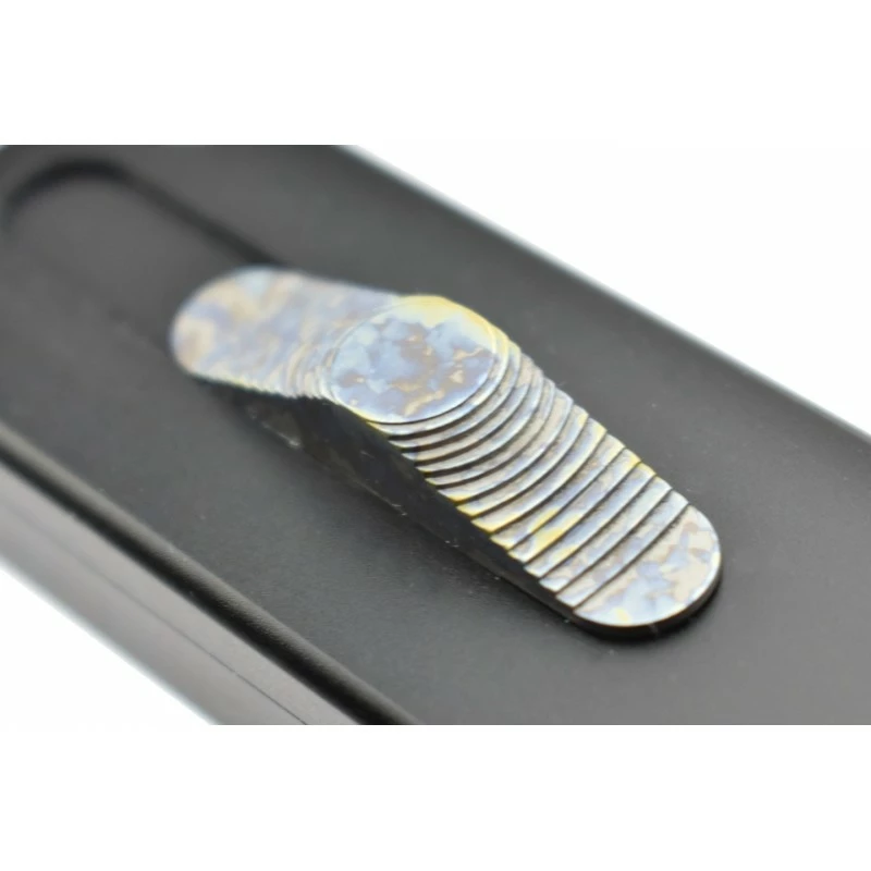 Le couteau automatique OTF Golgoth G12G+ possède, une fois n’est pas coutume, un manche noir en aluminium aéronautique afin d’être extrêmement robuste. Sa beauté est rehaussée par la présence d’éléments en titane avec anodisation crazy : comme les vis, le clip de poche au dos ainsi que le brise-vitre dont l’extrémité est en céramique. Un OTF qui convient même pour les situations les plus urgentes ! Ce modèle se décline en d’autres formes de lame.