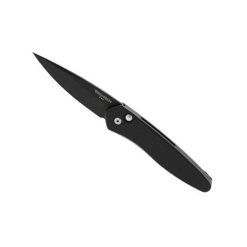 Ce modèle Pro-Tech Newport 3407 diffère en raison de sa lame de forme spear point, en acier CPM-S35VN, avec revêtement DLC noir. Une lame de couleur noire donc, à bout pointu, qui s’avère être marquée par le logo Pro-Tech USA, avec une lisibilité parfaite grâce à un contraste étudié. Rappelons que le Pro-Tech Newport est un couteau automatique, relativement simple d’utilisation, qui possède un manche en aluminium 6061-T6 anodisé noir, avec bouton poussoir pour assurer le déploiement de la lame. Fièrement fabriqué aux Etats-Unis, ce couteau automatique Newport DLC noir est très facile à transporter, que ce soit grâce à son petit gabarit en position fermée (105mm) ou son clip de poche profond. Existe aussi en version lame stonewashed (voir produits conseillés au bas de cette page).