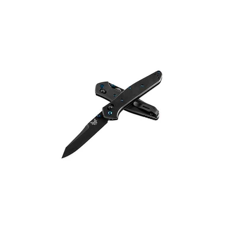 Le Benchmade 940BK_2003 Warren Osborne est un couteau pliant d’exception limité à 2000 exemplaires dans le monde. Une édition limitée qui se distingue par son revêtement noir furtif, avec des éléments bleu saphir pour un aspect ultra élégant. La lame noire de 86mm en acier CPM-S90V de qualité supérieure est de forme reverse tanto, elle intègre un double thumb stud bleu saphir pour une ouverture en toute simplicité (le verrouillage est de type axis lock). Avec logo papillon Benchmade en blanc, pour une excellente visibilité par contraste.