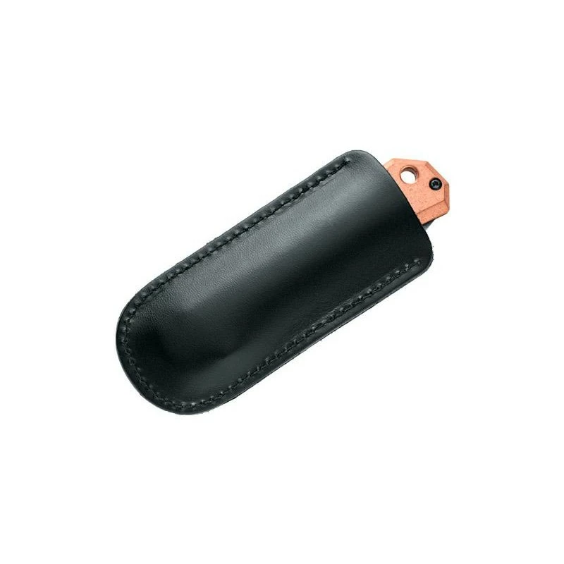 Ce couteau Ciol, par Denis Simonutti, pour Black Fox, séduit au premier regard. Comment ne pas tomber amoureux de son manche en cuivre en parfaite harmonie avec la couleur noire de la lame ? On peut le dire, son look est des plus attrayants, vous l’apprécierez très certainement. Le manche en cuivre mesure environ 9cm de long et intègre un trou pour lanière ce qui est à l’origine d’une facilité de port. Un pivot noir vient parfaire l’ensemble, une couleur qui n’a bien sûr pas été choisie au hasard puisqu’elle est en adéquation avec celle de la lame. D’ailleurs, à ce propos, elle est conçue en acier inoxydable 440C et présente une finition blackwash. Lame à cran slip joint avec logo Black Fox de couleur contrastée afin d’être bien mis en valeur. Un si beau couteau, on a jamais envie de l’abîmer. C’est pourquoi il vous est livré avec un étui en cuir noir de haute qualité.