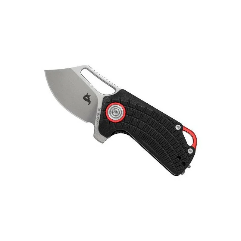 Le BlackFox Puck G10 noir BF.761B est équipé d’un clip en acier inoxydable pour une fixation facile sur une poche ou une ceinture. Le pivot et l’entretoise sont en acier inoxydable anodisé rouge, ajoutant une touche de couleur et de style au design minimaliste du couteau.
