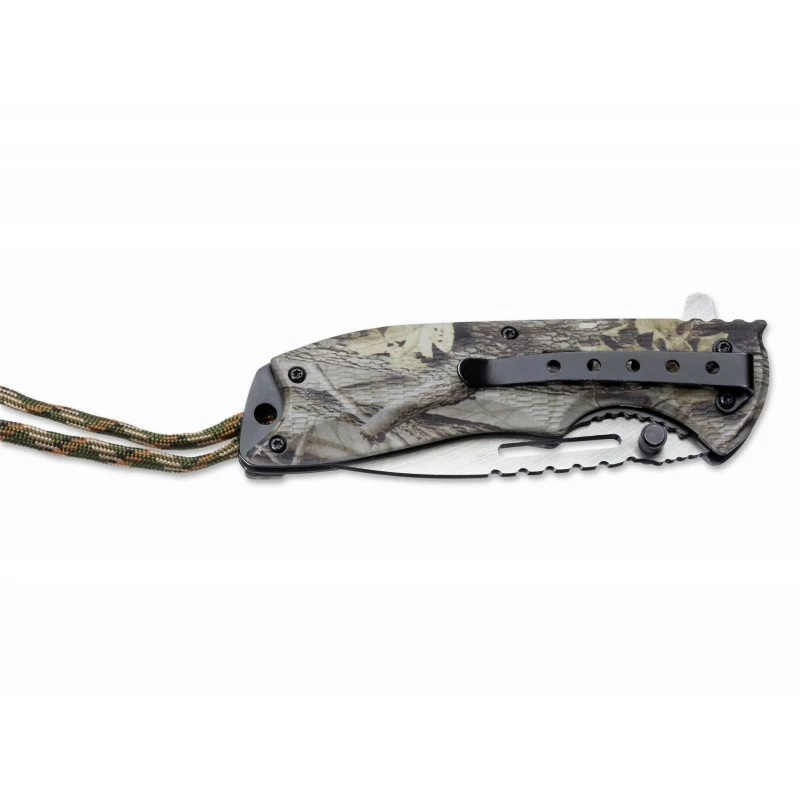 Le couteau Böker Magnum Camo Companion se fait discret en raison de son manche en plastique au motif camouflage. La paracorde le rend utile pour les situations d’urgences si bien que l’inconnu ne vous fera dorénavant plus jamais peur. Tout est mis en œuvre pour que la facilité de transport soit réelle : trou pour cordon et clip. Un compagnon de choix pour vos activités diverses en extérieur !