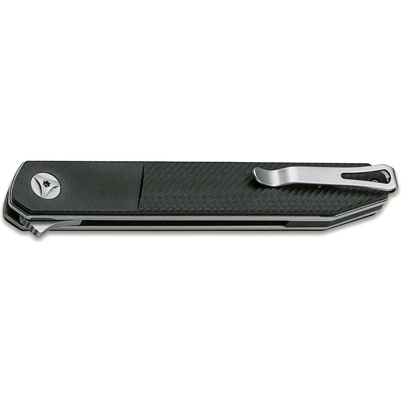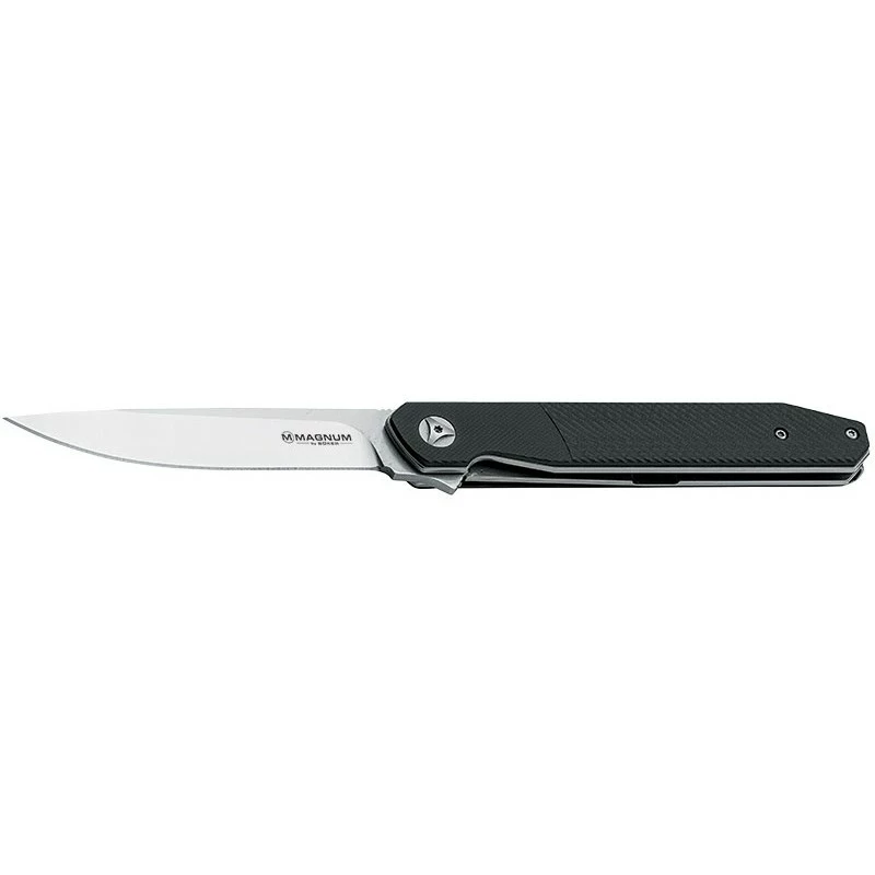 Savez-vous que le prénom féminin Japonais Miyu signifie “esprit supérieur” ? On comprend donc mieux pourquoi ce couteau Böker Magnum Miyu 01SC060 est si élégant ! Il est vrai qu’il se compose de lignes épurées proches de la perfection esthétique : un couteau pliant agréable à manier, mais aussi à regarder ! Conçu et fabriqué en Allemagne, le Böker Magnum Miyu 01SC060 est doté d’un manche noir en G10 avec clip de poche au verso. Cela assure des déplacements et mouvements quotidiens toujours sans le moindre problème ! Ce modèle est également équipé d’une lame drop point en acier inoxydable 440A mesurant 102mm de longueur (verrouillage de type liner lock). La lame s’ouvre très facilement d’une seule main grâce au flipper. Possibilité de la personnaliser par gravure (voir bouton ci-dessous). Le Böker Magnum Miyu, un couteau de poche efficace, transportable et raffiné !