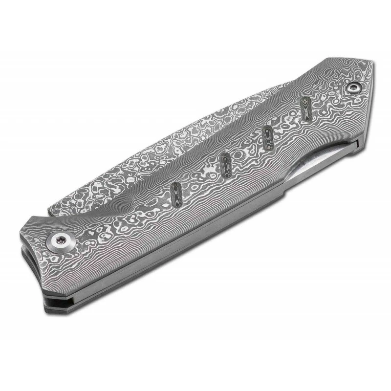 Le Damascus Dominator 01BO511DAM, signé Böker Plus, est un couteau qui marque les esprits. Il faut dire qu’il se compose non seulement d’une lame en damas 71 couches mais aussi d’un manche en damas ce qui est particulièrement original. Il en résulte un couteau pliant à l’aspect très décoratif puisque l’acier damas est caractérisé par la présence de petits motifs.