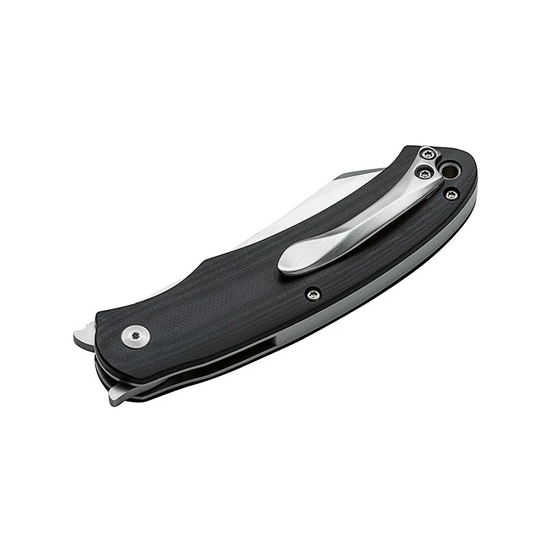 Le coutelier Kansei Matsuno aime combiner les éléments de style japonais avec des matériaux de style moderne. Le Böker Plus Takara 01BO893 est un couteau de gentleman de forme légèrement incurvée : un excellent compromis entre design et polyvalence. Il possède un manche profilé fabriqué à partir de G10 noir texturé et monté sur de solides revêtements en acier inoxydable. L’entretoise est de pleine longueur, elle se compose d’acier inoxydable ce qui crée un beau contraste avec la couleur sombre du G10. Un clip fraisé CNC en 3D ainsi qu’un trou pour lanière complètent à merveille l’ensemble : le Böker Plus Takara G10 se transportera ainsi sans la moindre difficulté.