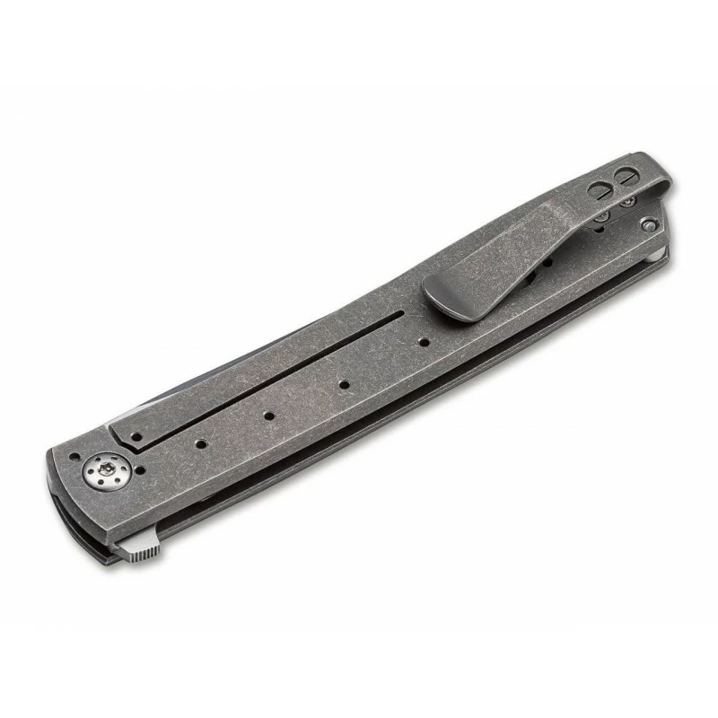 Ce modèle 01BO721 Böker Plus est conçu et designé par Brad Zinker. Il s’agit ici de la version “lame tanto” du couteau nommé Urban Trapper. La lame tanto, ici fabriquée en acier VG-10 et mesurant 86mm de longueur, confère un aspect plus agressif, plus percutant. Enrichie du logo Böker Plus en guise de décoration, elle s’ouvre par l’intermédiaire d’un flipper et se verrouille efficacement grâce au mécanisme liner lock.