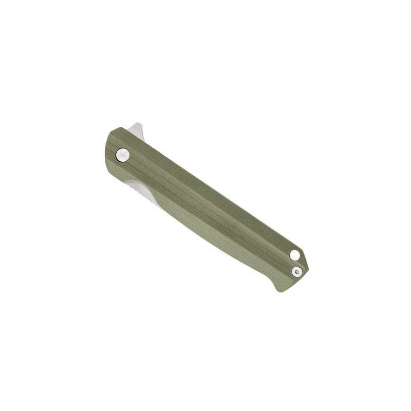Le Langford de chez Buck Knives est un couteau au profil mince, qui ne manque pas de style. Sur ce modèle 0251GRS, son manche est fabriqué en G10 vert, un matériau très utilisé pour les manches en raison de sa grande résistance au froid, à la chaleur et aux agents chimiques. Afin d’être précis, sachez que la poignée verte mesure 115mm de longueur, elle intègre également un clip de poche ainsi qu’un passe-lacet. Le couteau Buck Langford est muni d’une lame drop point de 86mm de long, en acier 7Cr, qui peut être déployée rapidement via le flipper, et en douceur via le système de roulement à billes Ball Bearing. Le verrouillage de la lame est assuré par le mécanisme liner lock, un incontournable. Possibilité de gravure sur lame en supplément (voir bouton ajouter une gravure), le Langford existe aussi en coloris noir. Couteau pliant garanti à vie contre les défauts de matériaux et de fabrication.