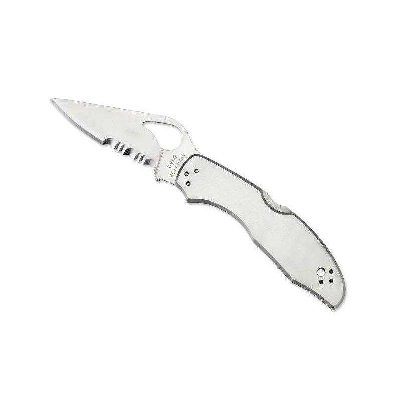 Les personnes préférant les manches en acier vont adorer ce couteau pliant Byrd Meadowlark 2 référence BY04PS2. Il faut dire qu’il intègre une poignée agréable à prendre en main et élégante conçue en acier inox satiné avec clip au verso pour faciliter les déplacements et mouvements. À noter que le manche acier mesure exactement 10cm de longueur, c’est donc tout naturellement qu’il pourra être rangé dans une petite poche de vêtement par exemple. Ce couteau de poche Byrd Meadowlark 2 bénéficie aussi d’une lame lisse/dentée de longueur 75mm en acier inox 8Cr13MoV. Une lame polyvalente toujours avec trou pour l’ouverture d’une seule main. Couteau fabriqué en Chine en collaboration avec la marque Américaine Spyderco.