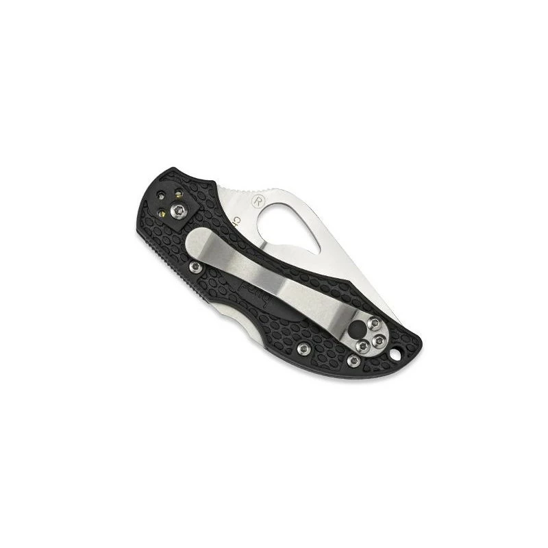 Malgré son manche noir en FRN (nylon et fibre de verre), ce couteau Byrd Robin 2 est très léger avec un poids de seulement 61 grammes. Robuste, le manche noir est décoré d’une ellipse avec à l’intérieur le texte “byrd Robin“, il est relativement compact avec une longueur de 85mm. Grâce au clip en acier au verso, le manche pourra être rangé aisément dans une petite poche permettant ainsi à l’utilisateur de toujours avoir son couteau Byrd Robin 2 à disposition. La lame à cran elle est conçue en acier inox 8Cr13MoV et mesure 62mm de long. Elle présente un trou en forme de comète permettant de l’ouvrir facilement d’une seule main, de quoi améliorer la réactivité et pouvoir ainsi agir rapidement en cas de problème. Couteau pliant Byrd Robin 2 produit en Chine mais designé par Spyderco, la coutellerie Américaine surveille en plus la production avec attention.
