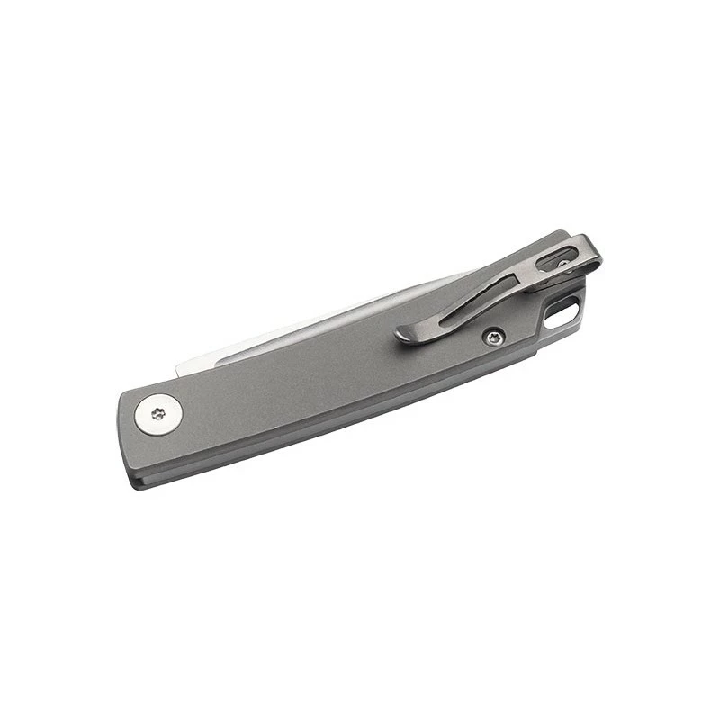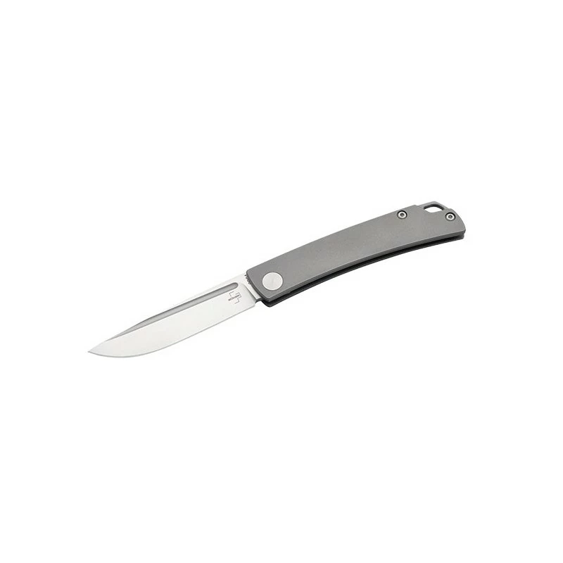 Le Böker Plus Celos Titanium LTD 01BO006 est un couteau de poche slip joint moderne, conçu pour les utilisations quotidiennes. Sans mécanisme de verrouillage, il convainc par son esthétisme, ses performances mais aussi sa facilité de transport puisqu’il ne mesure que 83mm une fois fermé. Le clip de transport amovible renforce cette excellente transportabilité, tout comme le trou de lanière. Fabrication du manche en titane de haute qualité.