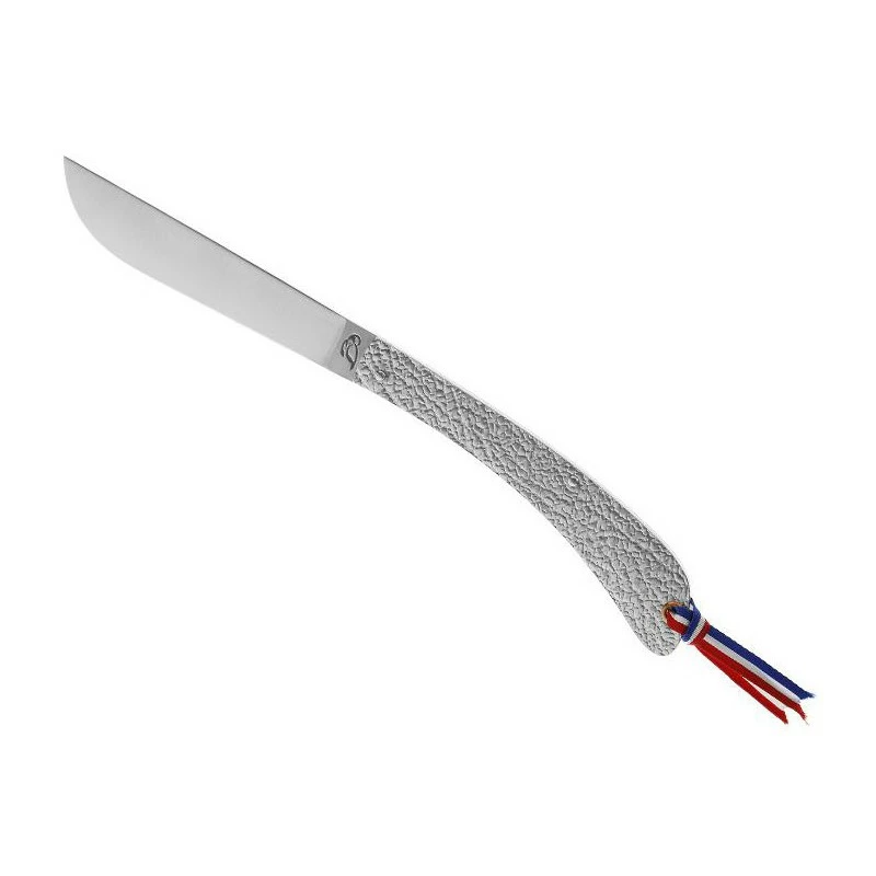 Conçu et fabriqué en France par Charlie Maridet, en collaboration avec l’entreprise Polissage Coupérier HG, ce couteau pliant N°1 Full Métal est porteur de la référence 2204.C. Il s’agit du modèle Cuir, car son manche de 11cm de long, en acier inoxydable, comporte un motif en relief cuir. Au design ultra-plat, la poignée grise est embellie en bout par le très célèbre ruban tricolore, rappelant avec style que le couteau est de conception/fabrication Française. Pratique, votre couteau Charlie Maridet n°1 Full Métal Cuir vous sera livré dans sa belle pochette en cuir noir, l’assurance de ne jamais l’abîmer lors des déplacements et mouvements.