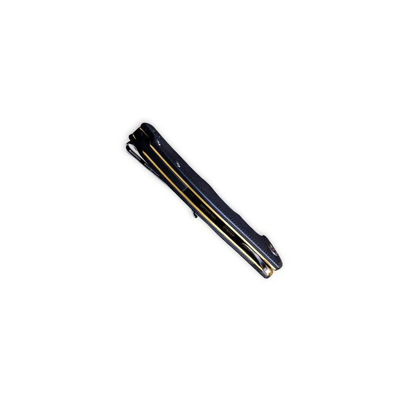 Voici le couteau pliant Civivi Praxis C803C dans sa version manche en acier doré avec plaquettes et entretoise en G10 noir. Une couleur très utilisée et surtout appréciée dans le milieu de la coutellerie : un coloris neutre qui plaît au plus grand nombre. De longueur 12cm, le manche noir intègre aussi un clip réversible : la transportabilité est excellente, tout comme l’ergonomie grâce aux creux. À noter que l’on peut aussi assez facilement distinguer le logo Civivi : cela apporte une touche design supplémentaire qui ne laissera aucun fan indifférent. Le couteau Civivi Praxis noir, c’est aussi une lame de 95mm en acier 9Cr18MoV satiné avec flipper, mécanisme ball bearing et cran intérieur. Une lame tranchante qu’il vous sera possible de personnaliser par gravure via le bouton “Ajouter une gravure” ci-dessous. Existe aussi en version manche vert ou marron clair.