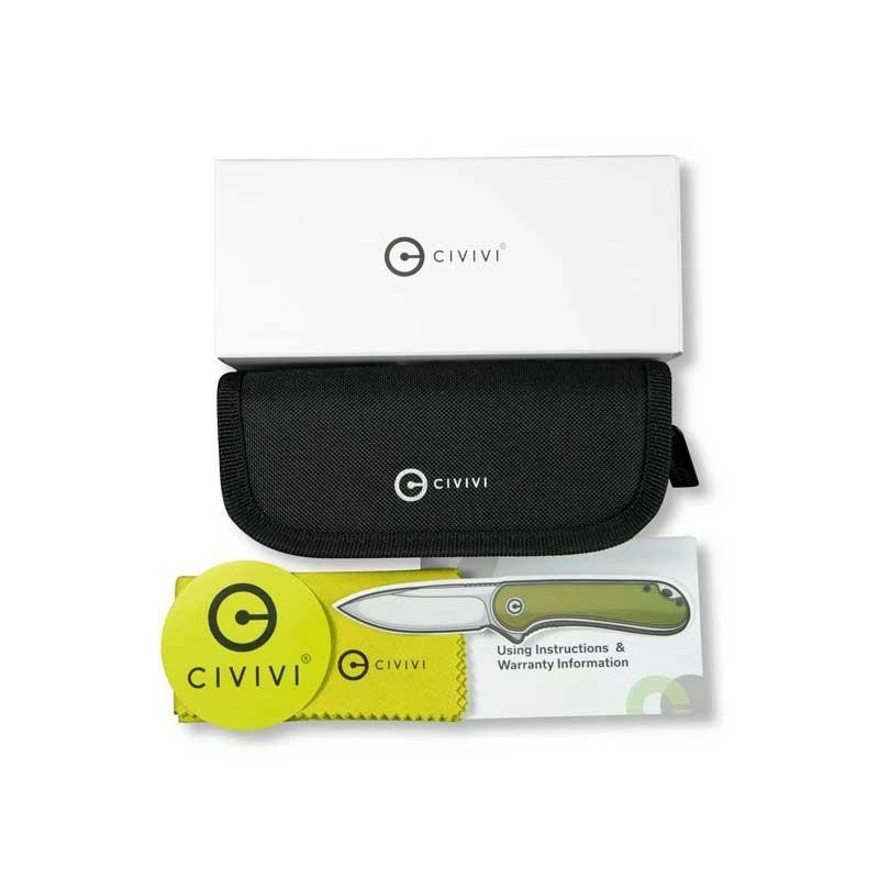 Le Civivi Savant C20063B1 est un couteau de qualité conciliant style et performances. Son apparence est relativement sombre du fait de sa lame noire couplée à un manche en bois de guibourtia. D’une longueur de 112mm, ce dernier est embelli du logo Civivi et intègre un clip noir offrant une possibilité de port à la poche. Un bien joli manche qui n’aura de plus aucun mal à se glisser dans la housse de rangement fournie.