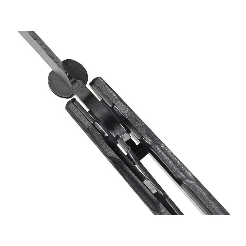 Ce couteau CRKT Aux est entièrement noir ! Il est doté d’une lame noire à dents en acier 8Cr13MoV à cran intérieur et à bouton plat. Le manche est en nylon et fibre de verre noir avec clip et mesure 11cm de longueur.