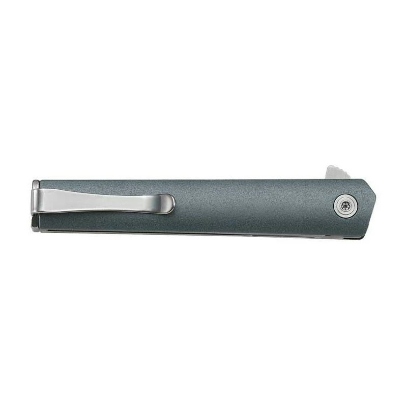 La poignée de couleur bleutée apporte son lot de modernité. Un clip de poche réglable permet un transport à gauche ou à droite du couteau.