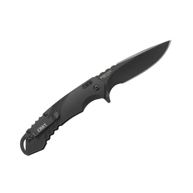 Conçu par Matthew Lerch, le CRKT Directive est un couteau pliant d’inspiration tactique. Son look entièrement noir ne vous laissera sûrement pas indifférent, il est à la fois sobre mais élégant, et n’attire pas l’attention. Facile à transporter, le couteau CRKT Directive 1063 possède un manche de 125mm de longueur en nylon et fibre de verre, avec simplement quelques stries en guise de décoration. Pour que le transport soit toujours aisé, la poignée noire intègre un clip de poche au dos ainsi qu’un trou pour lanière en bout. Le CRKT Directive est doté d’une lame noire en acier 8Cr14MoV qui peut être déployée à vive allure grâce au flipper, avec elle, agir vite et bien est possible ! Le verrouillage de la lame s’effectue de façon simple et sûre grâce au liner lock. Comme pour le clip de poche, la lame est décorée par le logo CRKT avec une couleur claire, qui se voit bien par dessus le noir.