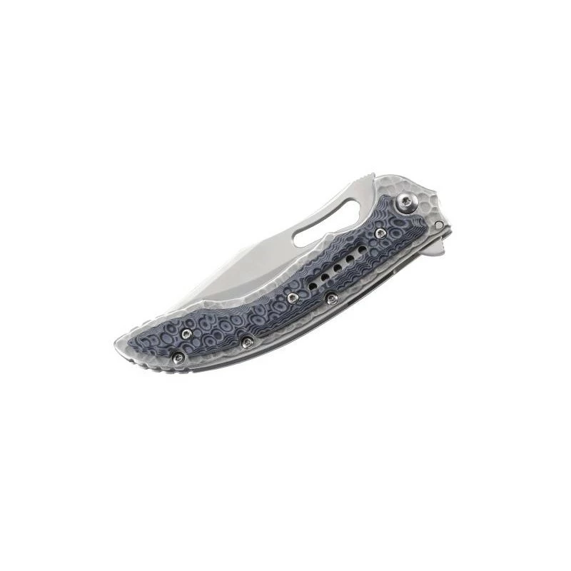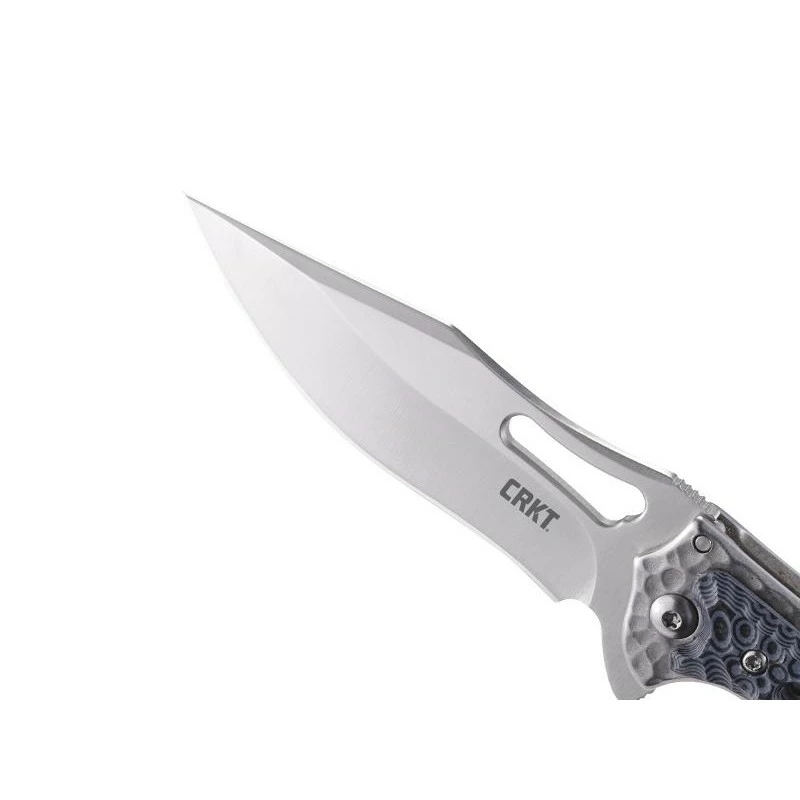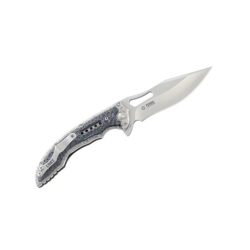 Ce couteau CRKT Fossil Compact est doté d’une lame à trou en acier 8Cr13MoV satiné avec flipper et cran intérieur. Le manche du couteau est quant à lui fabriqué en inox martelé avec plaquettes en G10 gris/noir et clip : il mesure 11cm de longueur. Ce couteau CRKT Fossil Compact intègre également le système IKBS pour l’ouverture de la lame.