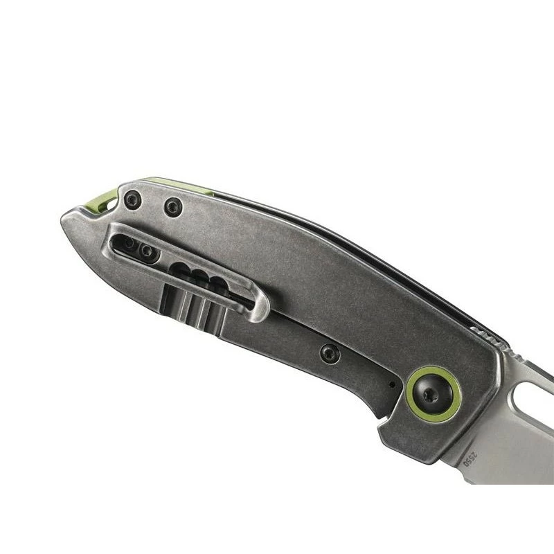 Avec le Sketch CRKT de Lucas Burnley, vous aurez toujours Ă disposition, lors des dĂ©placements, un couteau pliant performant et efficace sur qui compter. Conçu par Lucas Burnley, designer talentueux localisĂ© en Oregon, le Sketch 2550 possède une lame Ă la finition satinĂ©e en acier 8Cr14MoV riche en carbone. Ă€ verrouillage frame lock, cette dernière comprend un large trou, elle est parfaite pour travailler, gratter, couper l’isolation … Si cela vous intĂ©resse, n’oubliez pas de graver la lame en cliquant sur le bouton ajouter une gravure que vous trouverez plus bas. Le couteau CRKT Sketch possède ici un manche en acier inoxydable 2Cr13 Ă la finition blackwash, on observe aussi un pivot ainsi qu’une entretoise anodisĂ© vert, ce qui ajoute une touche colorĂ©e, et donc une note de gaietĂ©. Pour que le transport ne soit jamais un problème, le manche mesure 10cm de long, et intègre au dos un clip de poche.