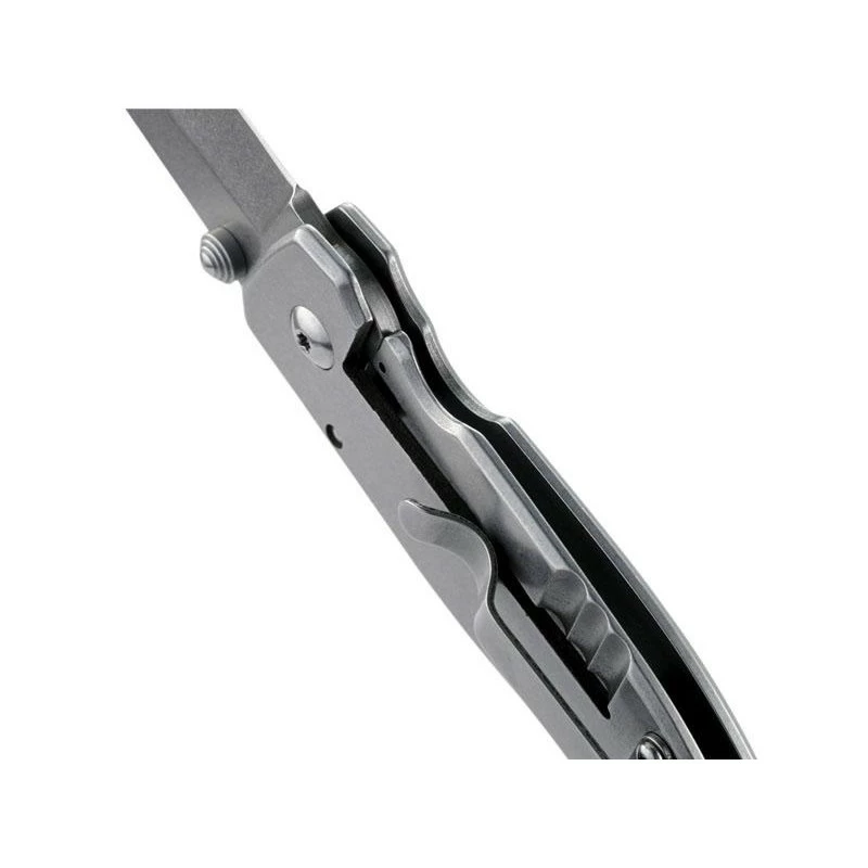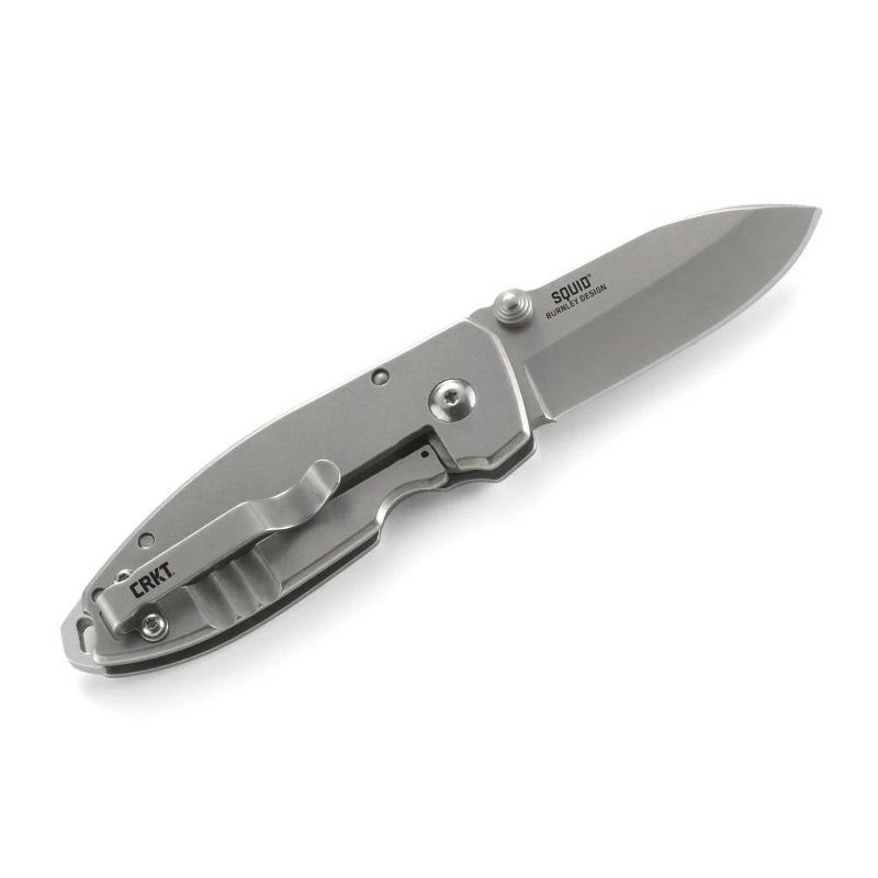 Le Squid CRKT de Lucas Burnley modèle 2490 est un couteau pliant de petite taille avec lequel vous allez pouvoir accomplir de grandes choses. Avant de commencer à le décrire, sachez qu’il existe en de multiples variantes, nous sommes ici en présence de la version gris stonewashed, une finition délavée parfaite pour le masquage des rayures. Le CRKT Squid 2490.CR est doté d’une lame en acier 8Cr13MoV à bouton double ce qui permet de la déployer plus facilement, le verrouillage est réalisé efficacement par le frame lock. De style drop point, la lame mesure 54mm de long, de petite taille, elle vous sera d’une grande utilité au quotidien. Le logo CRKT est présent à côté du double thumb stud, ce qui ne manquera pas de ravir les fans de CRKT, Columbia River Knife & Tool. Manche de 85mm en acier inoxydable avec trou pour lacet, porte-clés, situé en bout de poignée, ainsi qu’un clip de poche au verso.