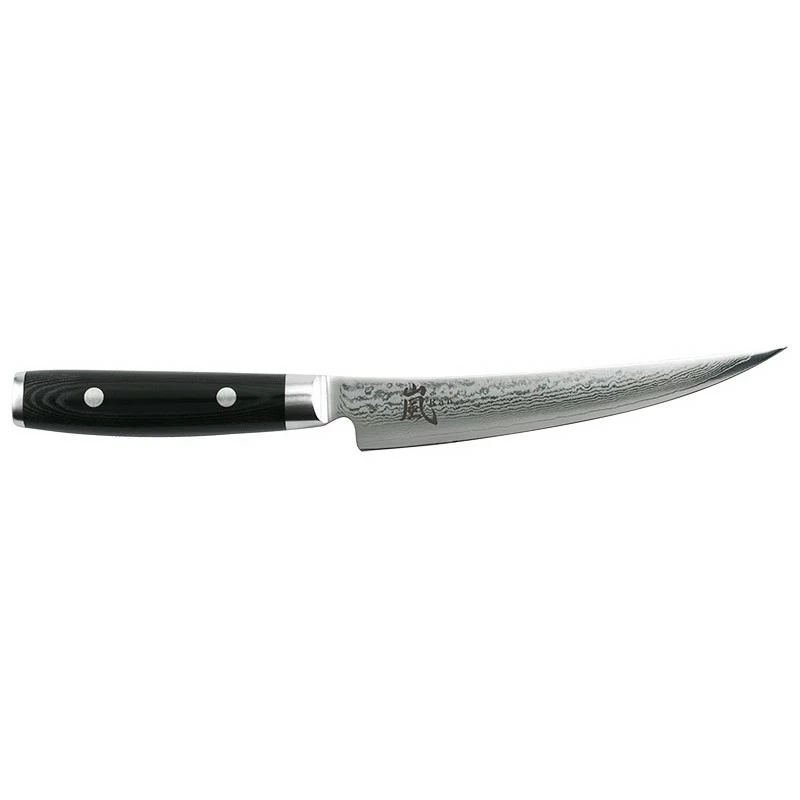 Yaxell est à l’origine du Ron Boning, un couteau à découper japonais qui vous permettra de découper vos aliments comme un véritable professionnel. Sa lame de type Tailing-Point possède un corps en VG10 sur lequel a été appliqué 69 couches de damas. Cet superbe lame a subi un traitement thermique afin de lui procurer une très bonne dureté et un bord ultra tranchant. Elle est adaptée à la découpe de viandes ou pour lever des filets de poissons. Le couteau Yaxell Ran Boning est équipé d’un manche en micarta noir avec virole, pommeau et rivets en acier inoxydable. Ran signifie “L’excellent” en japonais, un nom qu’il porte à merveille en raison de ses performances et de son design unique !