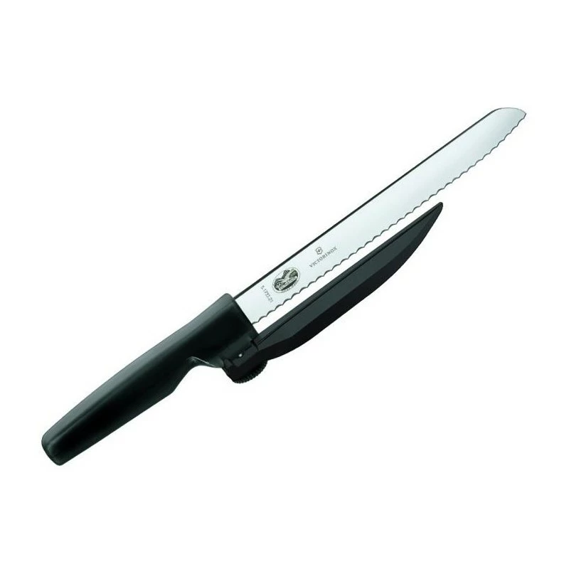 Pour vous assister durant vos découpes, vous pourrez bien sûr compter sur le dispositif réglable, mais aussi sur le confort que procure le manche noir en polypropylène. Un manche simple, et tellement confortable à manier/manipuler. Soulignons le fait que la lame crantée permet de trancher le pain avec beaucoup de puissance, même si ce dernier est dur. Avec le Dux Victorinox, vos tranches seront toujours régulières, et donc très appétissantes !