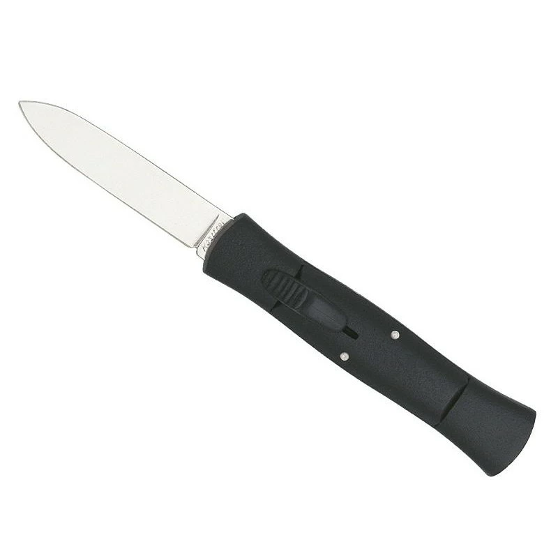 Ce couteau éjectable 007 référence 5021 est le petit frère du couteau automatique 5022. Il possède une lame plus petite : elle mesure 67mm de longueur et reste fabriquée à partir d’acier inoxydable. Le manche lui est toujours de couleur noire, comme pour la lame, il est plus petit en ne mesurant que 105mm. Ce gabarit compact a l’avantage de rendre le transport du couteau éjectable 007 5021 encore plus facile au quotidien. À noter que la lame se personnalise au moyen d’une gravure (+8,90€).