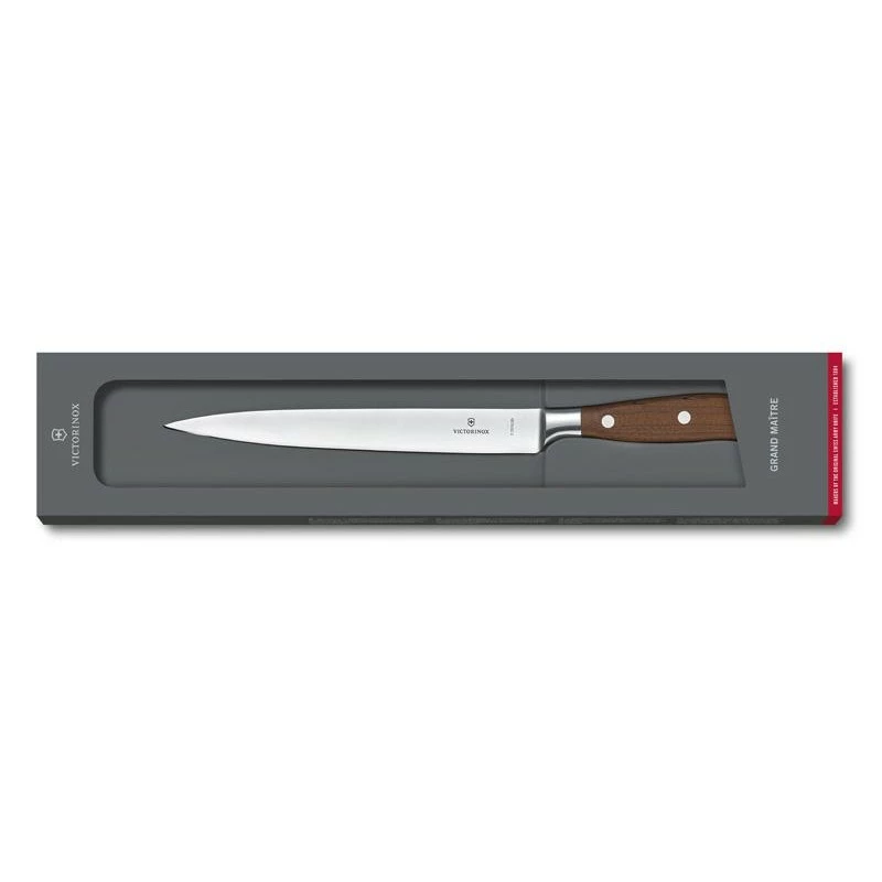 Pour retirer la peau des poissons ou des viandes en minimisant les pertes, il est indispensable d’avoir à disposition le bon couteau. Ce modèle 7.7210.20G, signé Victorinox, série Grand Maître, est un couteau filet de sole doté d’une longue lame flexible en inox, offrant un accès simple aux zones les plus étroites, difficiles à travailler. De longueur 20cm, la lame est forgée d’une seule pièce ce qui lui confère une forte solidité, et donc une excellente durabilité. Parfait pour travailler le poisson, mais aussi la viande, ce couteau filet de sole Victorinox série Grand Maître est muni d’un manche riveté en bois érable, conférant ainsi une touche traditionnelle. Sa forme est étudiée pour que l’ergonomie soit maximale, on peut le dire, le confort de prise en main est de la partie. Forgée à Solingen en Allemagne, la lame de 20cm est affûtée deux fois, avec un contrôle laser strict, l’assurance d’obtenir un couteau de cuisine de qualité, au tranchant irréprochable. Livré en boîte cadeau.