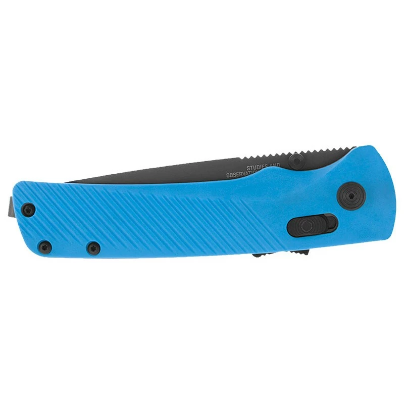 Le Flash AT Civic Cyan est un couteau haut en couleur qui ne manque absolument pas de caractère. Conçu pour une utilisation quotidienne, il est compact et relativement simple à transporter. Sa lame en acier inoxydable D2, à haute teneur en carbone, mesure 8.8 cm et a été traitée thermiquement en cryogénie, ce qui lui offre la combinaison idéale de rétention des bords et de durabilité pour une utilisation à long terme avec une simplicité d’entretien.
