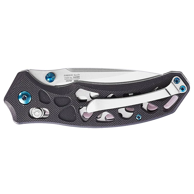 Le Ganzo Firebird F7631 fera le bonheur de celles et ceux appréciant les couteaux de poche originaux. Conçu et fabriqué en Chine, ce couteau propose d’excellentes performances ainsi qu’un design atypique, notamment au niveau du manche conçu en G10 noir. Une poignée mesurant 114mm de longueur, qui est ajourée par différentes formes, formant justement un ensemble hyper élégant, harmonieux. Le manche noir comporte également des notes bleutées pour un style des plus modernes. Le clip de poche à l’arrière garantit des mouvements et déplacements toujours sans encombre.