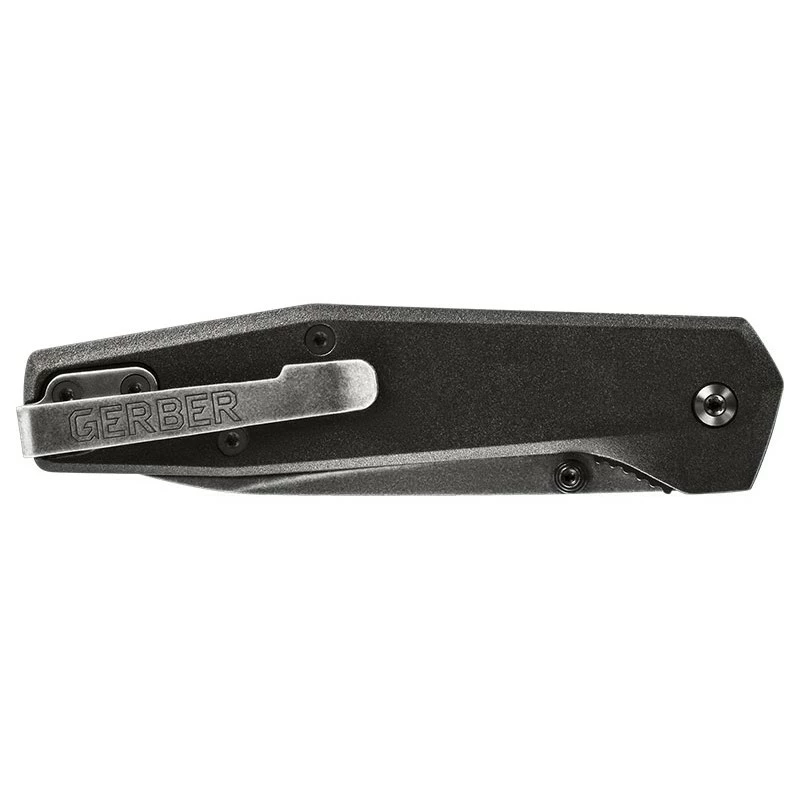 Le couteau Fuse Black Gerber est doté d’une lame drop point à la finition “black oxyde”. Elle se déploie rapidement via le double thumb stud (bouton de pouce présent sur chacune des deux faces). La face avant de la lame est discrètement marquée par le logo Gerber. Un EDC qui a du caractère, de la prestance …