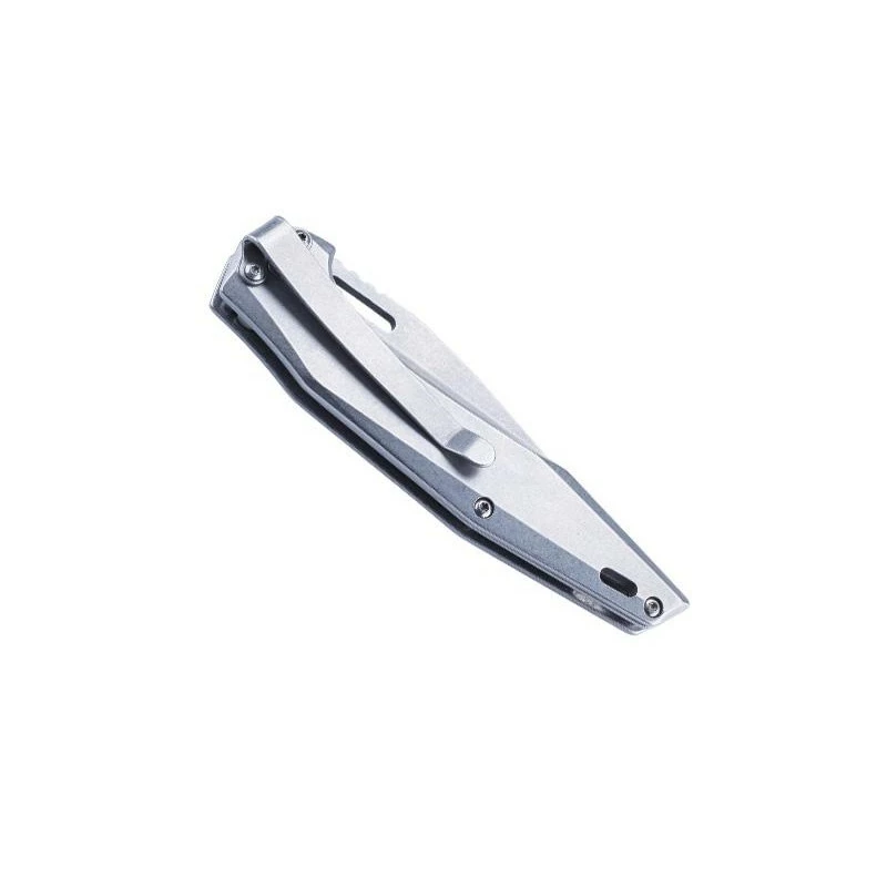 Ce couteau Herbertz 597412 est fabriqué entièrement en acier inoxydable 420 ce qui lui vaut une parfaite résistance à la corrosion, la rouille. La lame présente une finition stonewashed, elle est à trou ce qui permet de l’ouvrir de façon très simple au quotidien. Un mécanisme liner lock garantit que la lame soit bien verrouillée au moment de l’utilisation, par mesure de sécurité bien entendu. De longueur 9cm, la lame est très pointue en bout, et marquée par le texte “C.Jul.Herbertz” ainsi que le type d’acier, soit le 420. La poignée présente elle aussi une finition stonewashed, elle est marquée par trois petits traits en diagonale et mesure 11,5cm de long. Sa forme affinée garantit style et confort d’utilisation en permanence, son clip au dos fait en sorte que les déplacements avec le couteau ne soient jamais un problème.