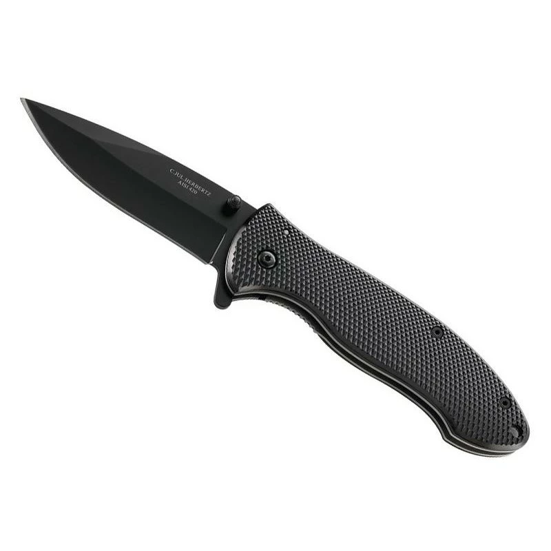 Grâce Ă son système d’ouverture assistĂ©e, ce couteau pliant Herbertz 228812 est très simple d’utilisation. Vous n’aurez aucune difficultĂ© Ă l’utiliser au quotidien ! Il possède une lame noire en acier 420 Ă cran intĂ©rieur et Ă bouton double avec “flipper”. La lame est marquĂ©e par le nom de la coutellerie Allemande ainsi que par le type d’acier utilisĂ©, ici le 420. Le manche lui, est fabriquĂ© en aluminium noir, un matĂ©riau ergonomique qui est complĂ©mentaire avec l’acier noir de la lame. DotĂ© d’un clip de poche pour le transport, le manche mesure 11cm de longueur. Ce couteau Herbertz 228812 se transportera donc très facilement au quotidien. Il suffit de le placer dans sa poche et le tour est jouĂ© !