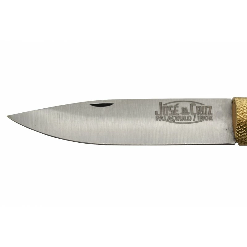 Le JDC09 est un couteau pliant pourvu d’une lame de 85mm conçue en acier inoxydable, un matériau assurant une parfaite résistance face à la corrosion. Décorée par le logo José Da Cruz Palaçoulo inox, la lame comprend une entaille et a une épaisseur de 1,8mm. N’oubliez pas qu’il est tout à fait envisageable de la personnaliser par gravure.