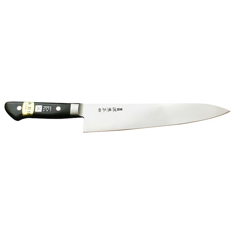 Ce couteau de chef Japonais est conçu et fabriqué par Kanetsune, à Seki. Il possède un très beau manche noir, fabriqué à partir de bois, un matériau noble, chic et élégant. Décoré avec le plus grand soin, le manche a l’avantage de ne mesurer que 12cm de long, permettant ainsi au cuisinier de le saisir avec aisance au quotidien. De quoi exécuter des gestes d’une précision chirurgicale !