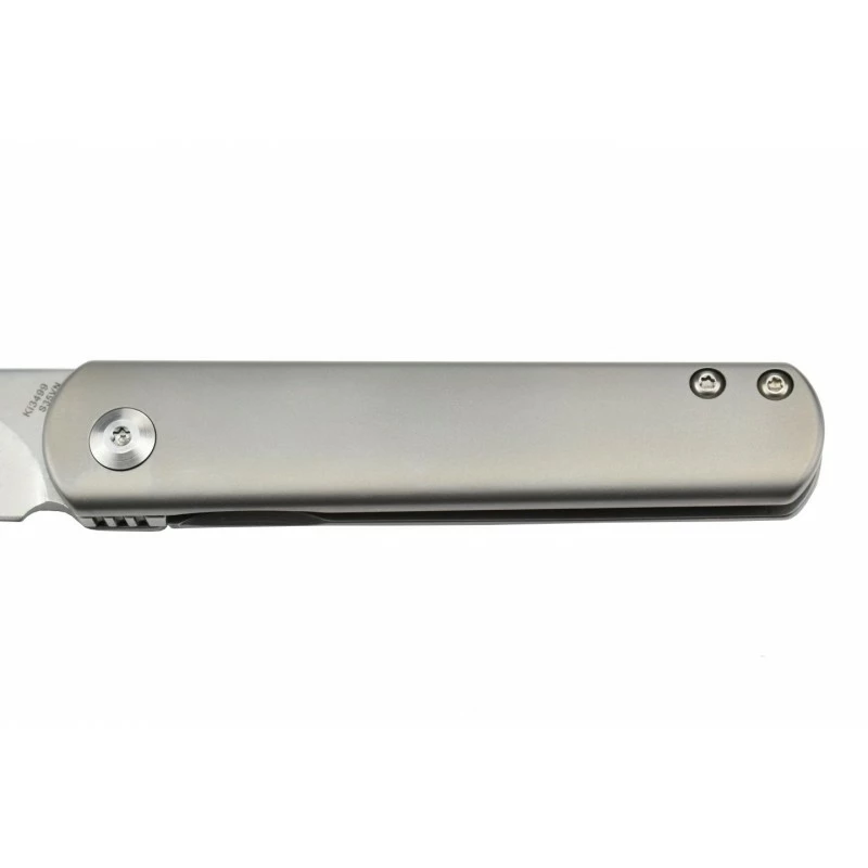 Grâce à ses belles lignes épurées, le Kizer Feist Ki3499 est un couteau pliant qui plait énormément, il dispose d’une allure très moderne, contemporaine. Vous apprécierez très certainement son manche en titane, à la finition parfaitement lisse, si bien qu’il tient très bien en main. Longueur de la poignée : 93mm, avec clip au dos afin de garantir une facilité de port, pour des déplacements et mouvements jamais sans votre couteau Kizer Feist !