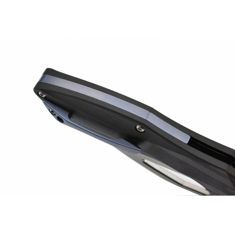 Le manche du Minitherium Kizer Ki3502 est fabriqué en fibre de carbone, avec clip de poche bleuté de forme originale, permettant de garantir un transport aisé et sans encombre en toutes circonstances. La poignée est profilée, ce qui assure une ergonomie exceptionnelle à chaque instant : tenir le couteau est agréable, confortable, et ce, même en cas d’utilisation prolongée. Un couteau de poche de grande qualité, livré dans un magnifique coffret Kizer, avec housse. L’épaisseur de la lame est de 3mm.