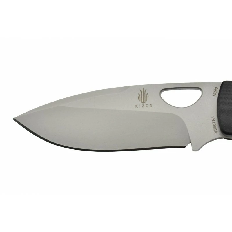 Conçu par Michael Vagnino et Tom Ferry, le Kizer Vanguard Zipslip, modèle V3507N1, est un couteau pliant très polyvalent, convenant notamment pour les tâches quotidiennes. Il possède une lame drop point, ajourée et décorée par le logo Kizer, mesurant 72mm de longueur et fabriquée en acier Bohler N690. Personnalisable, la lame bénéficie d’une finition stonewashed délavée pour le masquage des rayures. Épaisseur de la lame : 3mm.