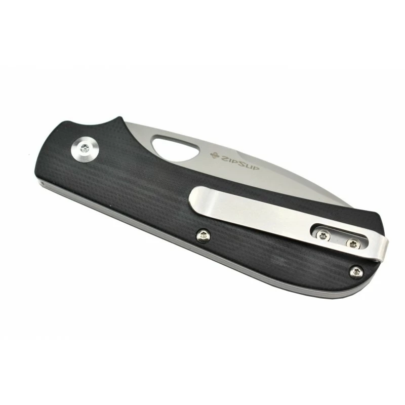 Le couteau Vanguard Zipslip, par Kizer, dispose aussi d’un manche noir en G10, équipé du système d’ouverture Everflush à cran forcé, permettant de déployer la lame d’une seule main en toute simplicité. Avec le Vanguard Zipslip, soyez réactif en toutes circonstances ! La poignée noire en G10 intègre aussi un clip de poche au dos, assurant des déplacements et mouvements toujours très aisés, d’autant plus que le couteau est léger : à peine 90g sur la balance.