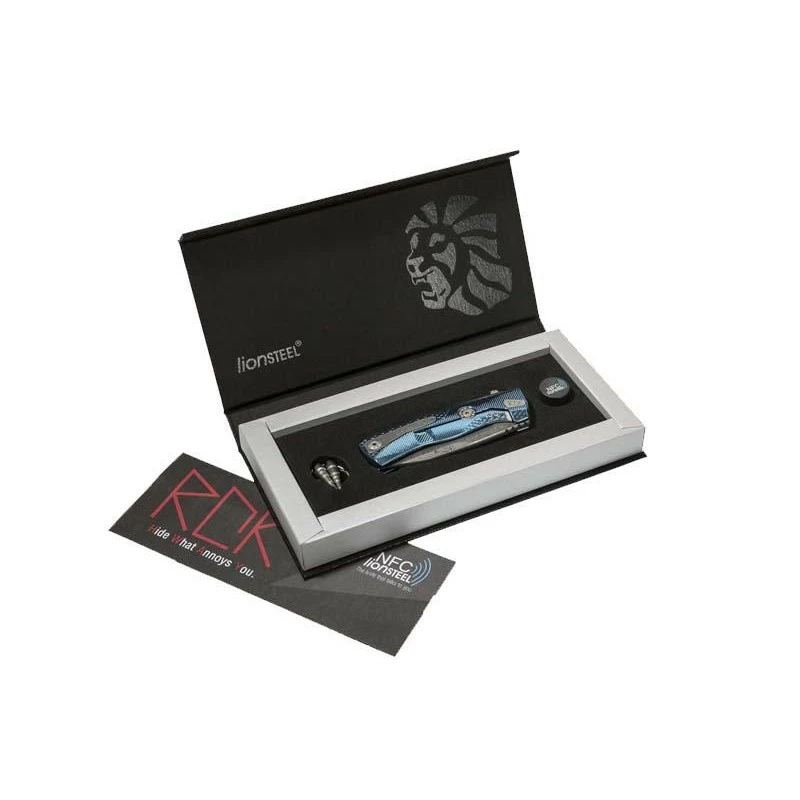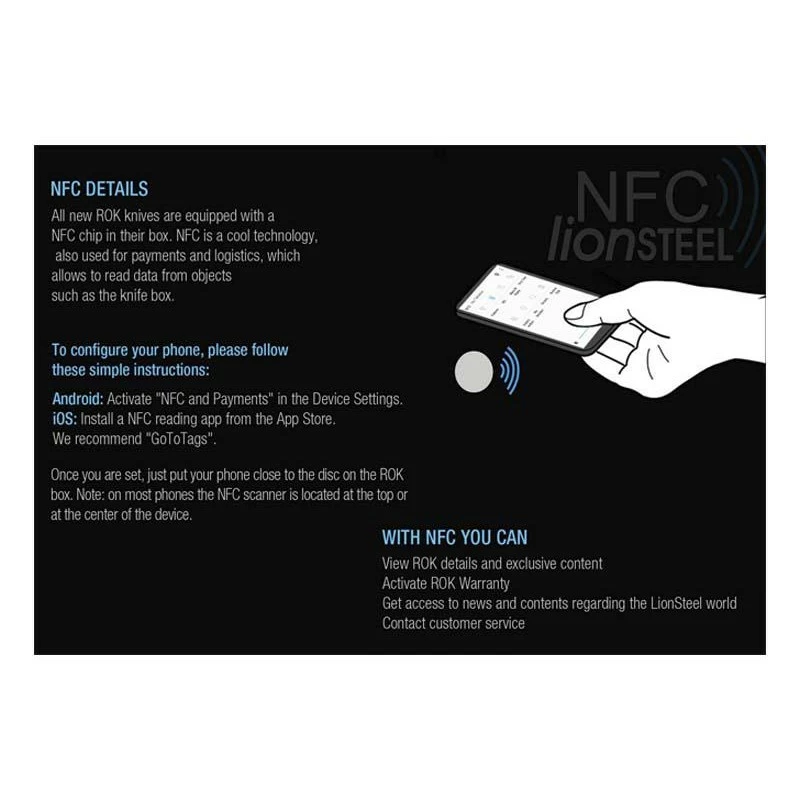 En plus d’être élégant et performant, ce modèle LionSteel ROKDD.BL est également très innovant du fait qu’il est livré avec une sublime boîte décorée par le logo de la marque Italienne. Elle contient une puce NFC qui permet à l’utilisateur, d’avoir accès à toutes les informations du couteau à l’aide d’un simple smartphone ou lecteur NFC.