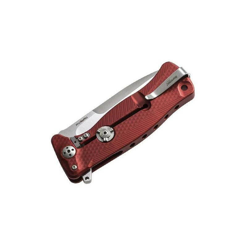 Ce couteau LionSteel SR11 rouge se dote d’une lame en acier Sleipner satiné avec flipper et cran intérieur. Au niveau du manche, il est en monobloc SOLID avec clip réversible et pic brise-vitre, le must pour les situations d’urgence. Pour ceux qui ne savent pas, la technologie SOLID est développée par la coutellerie LionSteel elle-même, elle permet d’obtenir un manche monobloc taillé en centre d’usinage à partir d’une seule pièce de matière. C’est pour cette raison que le manche de ce couteau LionSteel SR11 aluminium rouge est si magnifique : un véritable couteau de poche de collection ! Pliant, ce modèle est muni d’un manche de 12cm de longueur : cela permet de pouvoir le transporter facilement au quotidien. En effet, il est possible de le ranger dans un sac de voyage ou même dans une petite poche. Si vous désirez protéger votre couteau LionSteel SR11 des chutes et chocs, n’hésitez pas à consulter notre catégorie dédiée aux étuis pour couteaux avec manche de 12cm.