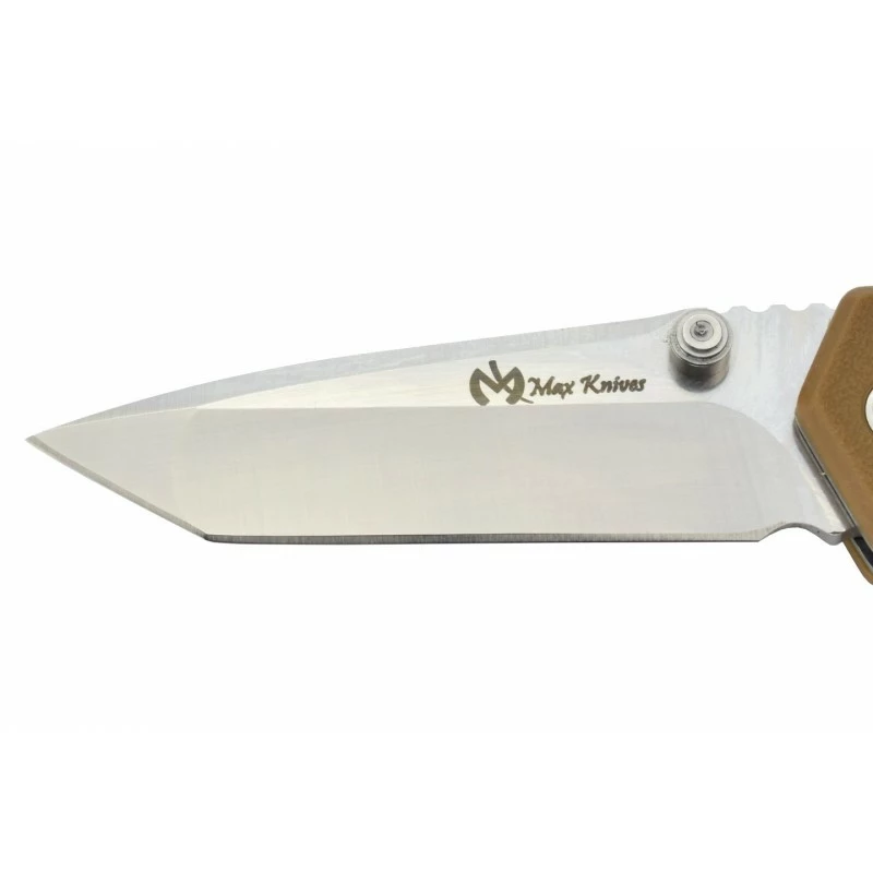 Ce Max Knives MK116D est un modèle tactique dont le manche en plastique finition désert est ajouré pour un effet très géométrique. D’ailleurs, on précisera le fait que la poignée est marquée par le texte suivant : “Life & Geometry“. Longueur du manche en position fermée : 95mm, pour une facilité de port à toute épreuve, avec mousqueton en bout pour accrocher, attacher, le couteau Max Knives MK116D n’importe où avec la plus grande aisance. Le blocage automatique de la lame en position fermée apporte énormément de sûreté, déblocage par pression de piston. Le couteau Max Knives MK116D Life & Geometry peut être rapidement déployé via le bouton de pouce dit thumb stud. Sa lame mesure 67mm de longueur, elle est de forme tanto, ainsi que fabriquée en acier inoxydable 12C27, avec présence du logo Max Knives à côté du thumb stud. Personnalisation par gravure possible.