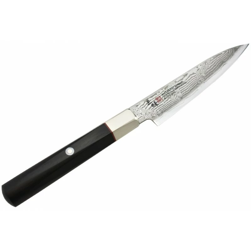 Le couteau Japonais Mcusta HZ2-3001DS Splash Hybrid possède un manche en pakkawood noir stabilisé à l’origine d’une forte élégance mais également d’un grand confort de prise en main. Cuisiniers et cuisinières vont pouvoir utiliser leur couteau Petty de façon intensive, et surtout de façon très agréable ! On soulignera qu’une mitre en alliage de nickel-argent est aussi de la partie. Un couteau de cuisine de grande qualité signé Mcusta pour le travail des légumes ! Existe aussi en version 15 ou 9cm.