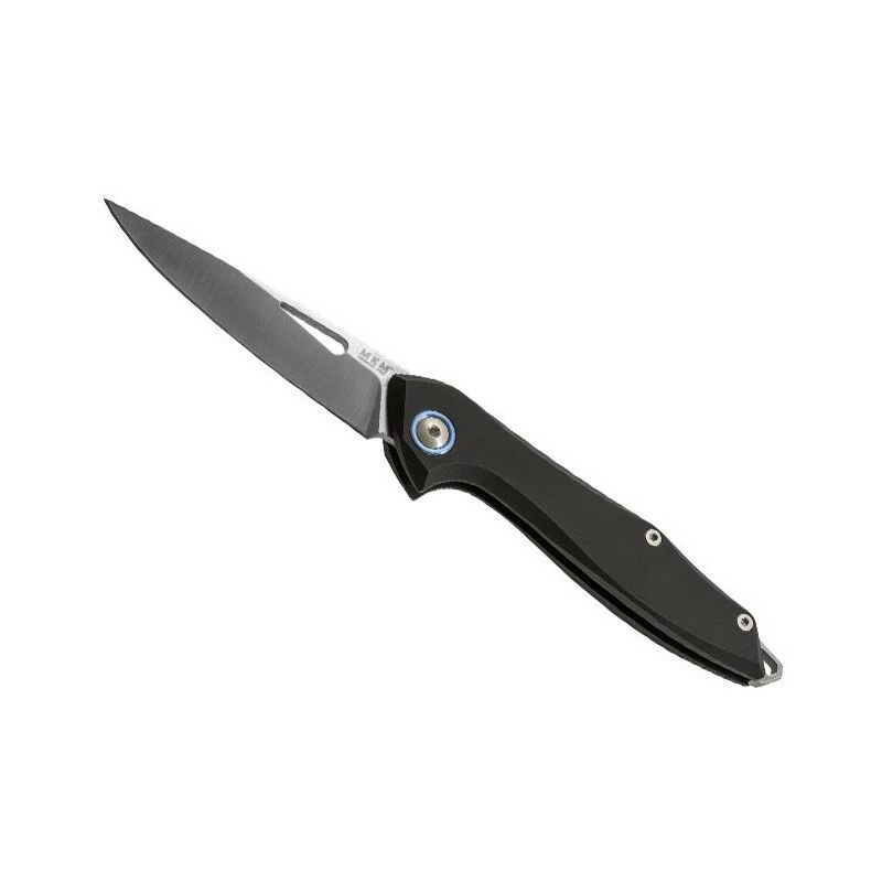 Conçu par le designer Lucas Burnley, ce couteau MKM Cellina, par Mercury (référence MK.MY02A), est doté d’un design ravageur, qu’on ne peut qu’apprécier. Il possède un manche en aluminium 6060-T6 anodisé noir apportant du confort lors de la prise en main ainsi que de la légèreté. Un manche qui est aussi très moderne, notamment en raison du pivot en titanium anodisé bleu créant ainsi un parfait contraste. De longueur 10cm, le manche en aluminium noir se transporte facilement n’importe où, il y a également une petite excroissance en bout faisant office de trou pour lanière.