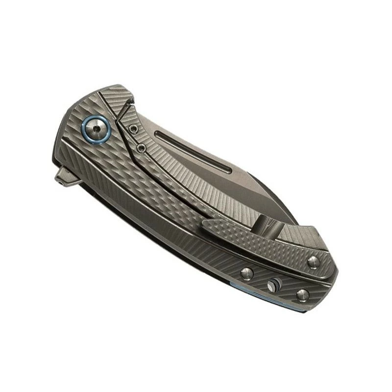 Le couteau MKM Colvera, par LionSteel, référence LS02CT, est conçu par le designer Jesper Voxnaes. C’est un couteau de poche possédant un manche fabriqué en fibre de carbone noire au recto, ainsi qu’en titanium gris au verso, une diversité de matériaux qui rend ce couteau MKM Colvera ultra élégant. De plus, peu importe la face, le manche se voit décoré par un pivot en titanium anodisé bleu, apportant son lot de modernisme. Avec une longueur de 105mm, la poignée peut être facilement rangée dans une poche, il y a d’ailleurs un clip en titanium gris visant à faciliter les déplacements/mouvements. Relativement large, le manche confère une prise en main toujours ferme et très confortable.