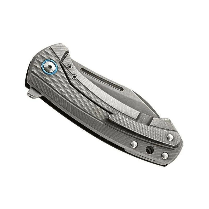 En raison de son manche bi-matière (G10, titanium), il est très difficile de résister au charme de ce couteau MKM LionSteel, modèle Colvera (LS02GTBK). Très confortable à manier et facilement transportable (longueur 105mm), le manche est fabriqué en G10 noir au recto, ainsi qu’en titanium 6AL4V gris au verso. Cela confère beaucoup d’élégance tout en conservant un aspect sobre et discret, on mentionnera toutefois la présence d’un pivot en titanium anodisé bleu apportant une petite note colorée faisant toute la différence en matière de design. Il y a aussi une entretoise ainsi qu’un clip de poche en titanium gris, afin que votre couteau pliant MKM Colvera par LionSteel LS02GTBK puisse vous accompagner où vous voulez, quand vous voulez.